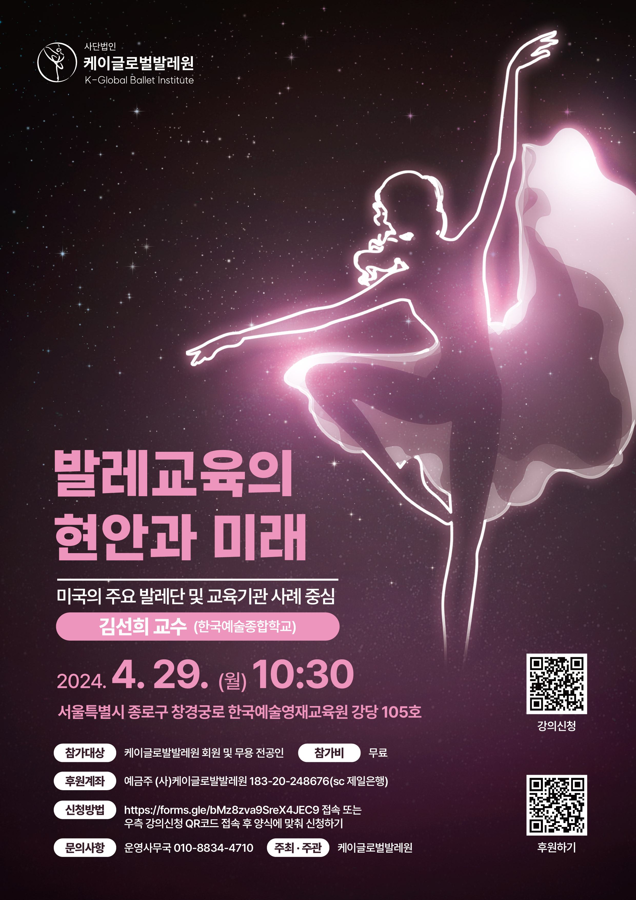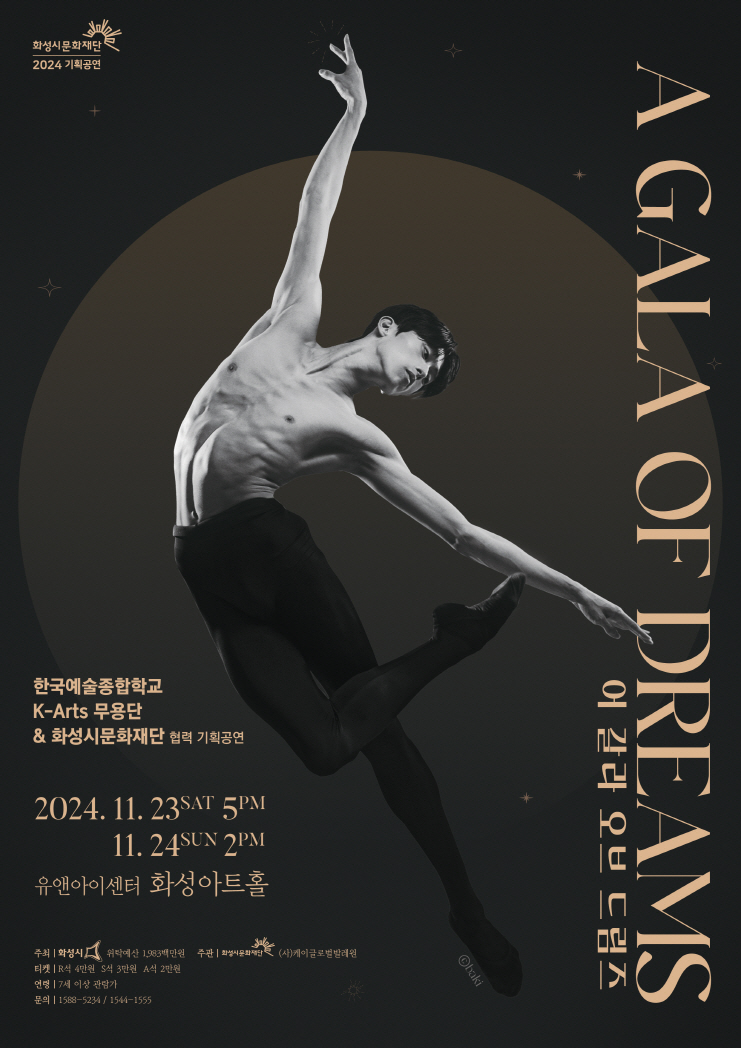 <발레의 별빛, 글로벌 발레스타 초청 갈라공연>일시 : 2025년 1월 11일(토) 19:00 / 2025년 1월 12일(일) 14:00 & 19:00장소 : 세종문화회관 세종대극장후원 : 한국예술종합학교협찬 : KB국민은행, 셀퓨전씨, 에뚜왈, 투니고, 저축은행중앙회, 비트윈성형외과, 화성시티발레단, 채리, 발레튠, 이플로라, 서울발레스쿨